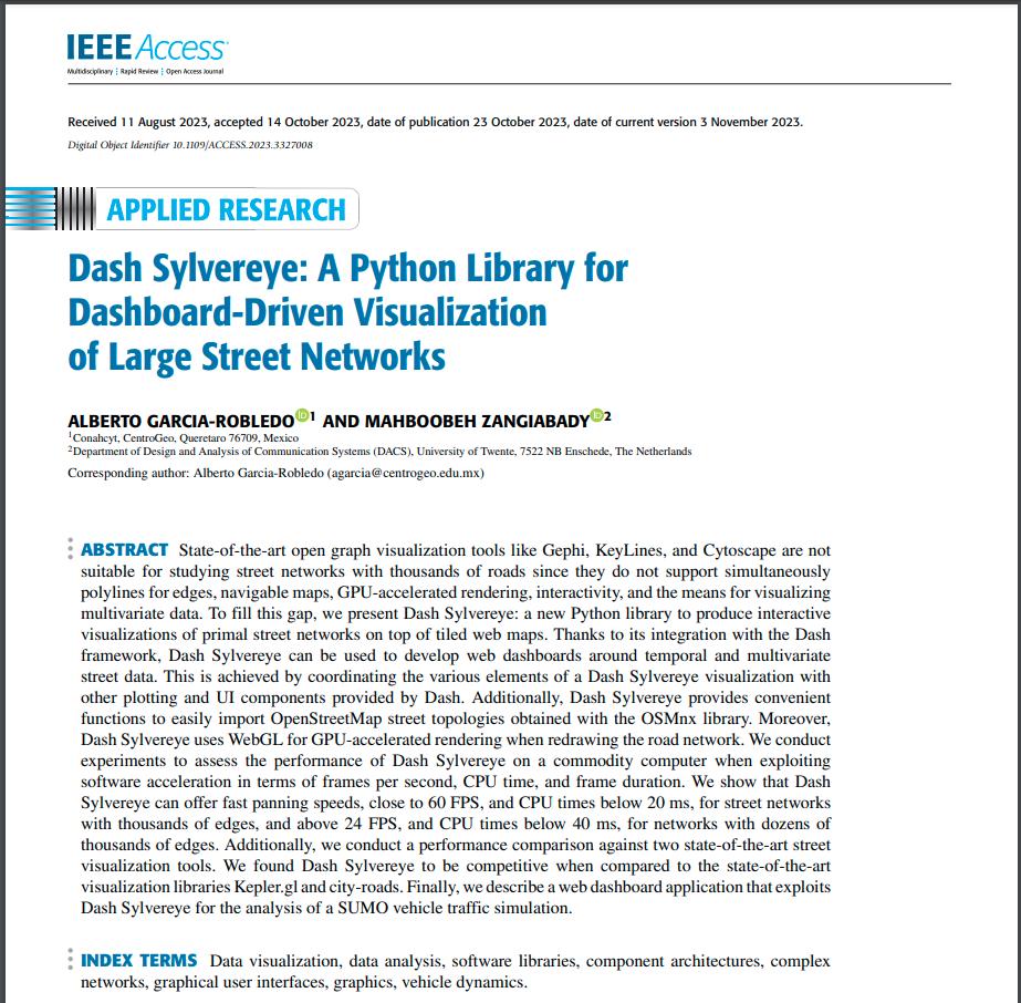 We are thrilled to announce the publication of our latest research paper, “Dash Sylvereye: A Python Library for Dashboard-Driven Visualization of Large Street Networks,” in the open-access journal IEEE Access (2022 IF 3.9).